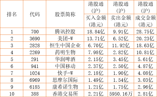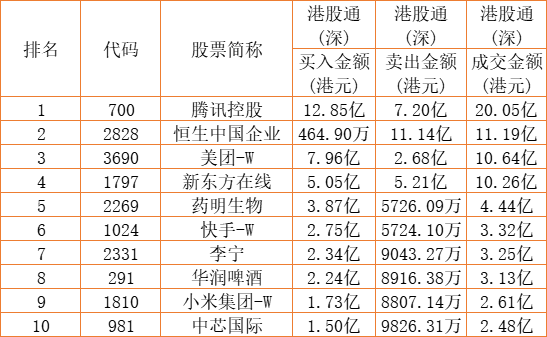亚汇网实时数据统计:截至10月26日收盘,腾讯控股、美团-W、恒生中国企业位居港股通(沪)成交前三,腾讯控股、恒生中国企业、美团-W位居股通(深)成交前三。
