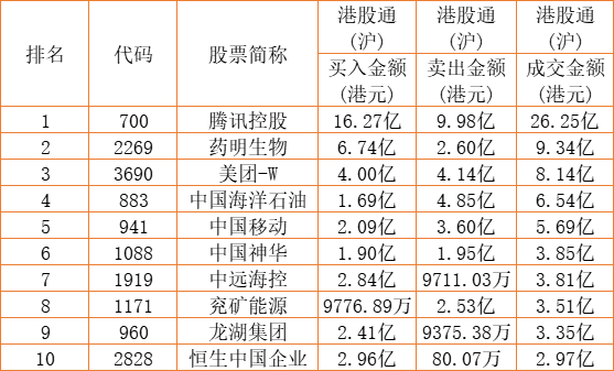 亚汇网实时数据统计:截至10月31日收盘,腾讯控股、药明生物、美团-W位居港股通(沪)成交前三,腾讯控股、新东方在线、美团-W位居股通(深)成交前三。