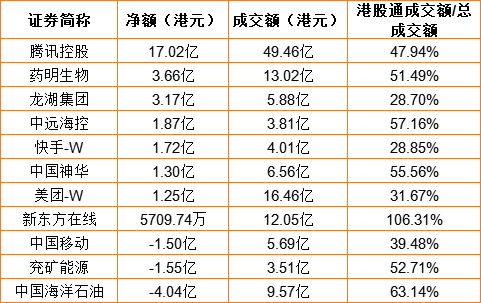 亚汇网10月31日港股通数据统计显示:腾讯控股净买入额居首,达17.02亿港元,中国海洋石油净卖出额居第一位。(亚汇网编辑:陌尘)