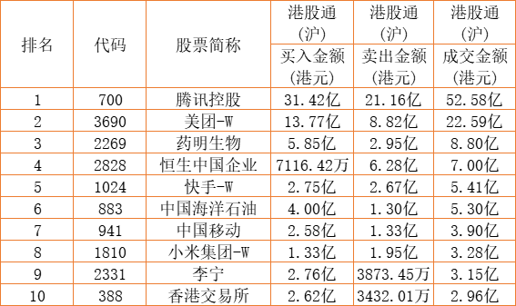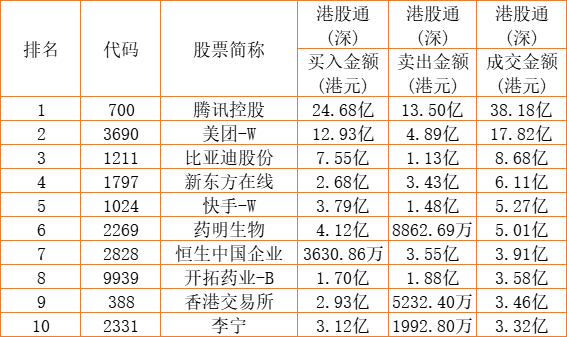亚汇网实时数据统计:截至11月1日收盘,腾讯控股、美团-W、药明生物位居港股通(沪)成交前三,腾讯控股、美团-W、比亚迪股份位居股通(深)成交前三。