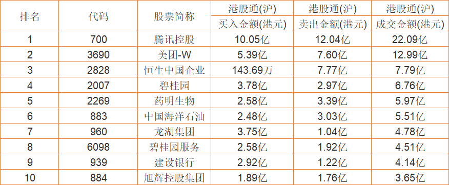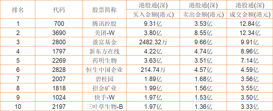 亚汇网实时数据统计:截至11月9日收盘,腾讯控股、美团-W、恒生中国企业位居港股通(沪)成交前三,腾讯控股、美团-W、盈富基金位居股通(深)成交前三。