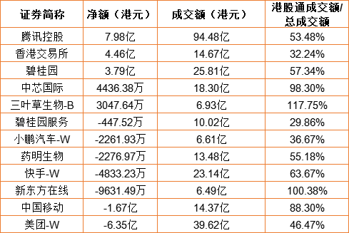 亚汇网11月15日港股通数据统计显示:腾讯控股净买入额居首,达7.98亿港元,美团-W净卖出额居第一位。(亚汇网编辑:陌尘)