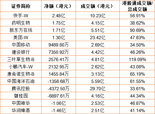 亚汇网11月21日港股通数据统计显示:快手-W净买入额居首,达2.48亿港元,华润啤酒净卖出额居第一位。(亚汇网编辑:陌尘)
