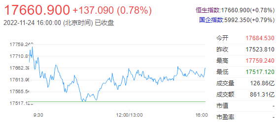 港股三大指数集体收涨,早盘一度转跌午后维持震荡行情,市场情绪稍显谨慎。截止收盘,恒指涨0.78%,国指涨0.79%,恒生科技指数涨0.79%。港股后市展望:平安证券认为,经过过去半个多月的强力上涨,港股获得了显著的估值修复,市场不少投资者对于短期快速大幅上涨的港股市场开始出现“恐高”情绪。但在国内经济基本面和海外流动性预期等各项因子迎来向好转变的背景下,港股估值修复仍有一定空间可以把握,只是波动率和反复程度会显著高于过去半个多月。