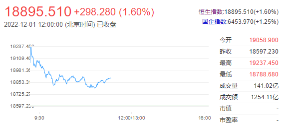 恒指夜期昨晚跟随美股造好而高收,更冲上19000关口,高见19043,最多升426点。最后收市仍能企在19012,收升395点。港股早上同跟高开,随后再扩大升幅至高见19237,最多升640点,并创近两个半月高位。唯高位见沽盘涌出,恒指逐步收窄升幅,再失守19000关口,低见18788,仅升191点。恒生科技指数亦同步高开后,再扩大升幅,更曾冲上4000关口,高见4018,最多升220点。恒指踏入12月首日,能延续升势再造好。相信是近日港汇指数持续强势,更突破7.8至见7.7982,为自年初2月至今首见。