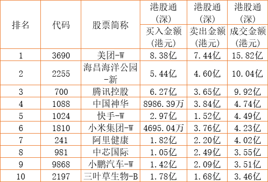 港股通(深)买卖前十股(单位:港元):