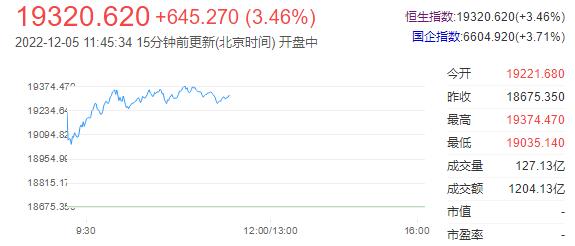 港股三大指数全线飙升,恒指午间收涨3.46%,恒科指涨6.57%盘中一度升逾7%创3个月新高,国指涨3.71%。南下资金半日净流入27.17亿港元,大市成交额为1204亿港元。