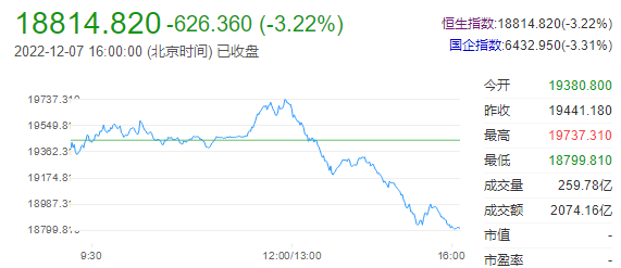 港股三大指数早盘维持震荡,午后防疫“新十条”发布,三大指数短暂冲高后持续下跌,恒生科技指数一度跌至4%,收跌3.77%险守4000点大关,恒指、国指分别跌3.22%和3.31%,恒指失守19000点。港股后市展望:中信证券认为,在当前至明年1季度的衰退预期交易后,2季度起港股料将进入估值抬升阶段,随着下半年国内经济复苏提速,料港股更将迎来估值和业绩的双重修复。看好顺周期板块以及大消费行业的价值重估,建议关注大金融及服务类消费。