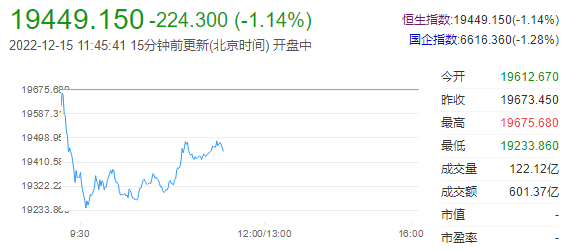 受隔夜美股跳水下跌影响,港股上午盘低开走弱,恒指跌1.14%,国指跌1.28%,恒生科技指数跌1.54%。