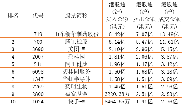 亚汇网实时数据统计:截至12月16日收盘,山东新华制药股份、腾讯控股、美团-W位居港股通(沪)成交前三,美团-W、腾讯控股、山东新华制药股份位居股通(深)成交前三。