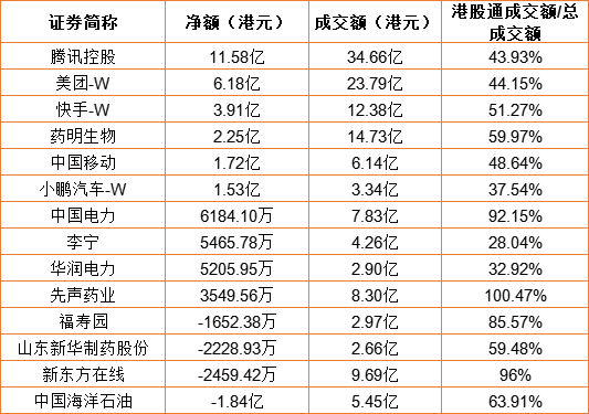 亚汇网12月28日港股通数据统计显示:腾讯控股净买入额居首,达11.58亿港元,中国海洋石油净卖出额居第一位。(亚汇网编辑:陌尘)