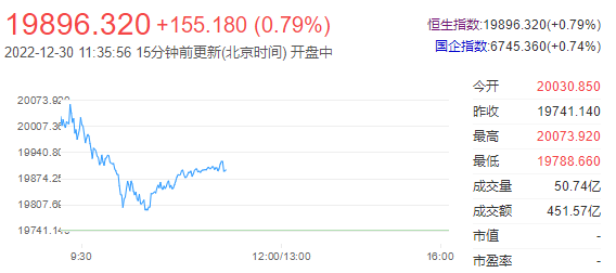 今日开盘,港股恒生指数(19890.689 149.55 0.76%)高1.47开%,重新站上二万点关口,随后涨幅收窄。截至午间收盘,恒生指数涨0.82%,报19903.11点,国企指数涨0.81%,红筹指数涨1.29%。