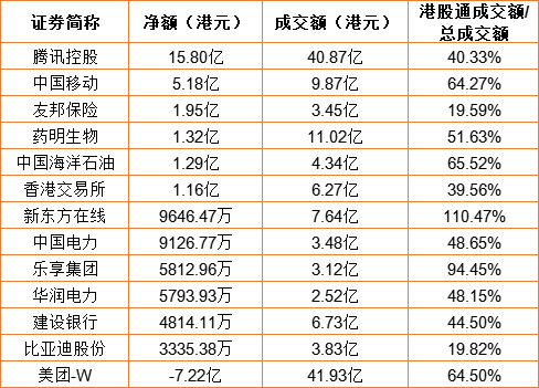 亚汇网1月3日港股通数据统计显示:腾讯控股净买入额居首,达15.80亿港元,美团-W净卖出额居第一位。(亚汇网编辑:陌尘)