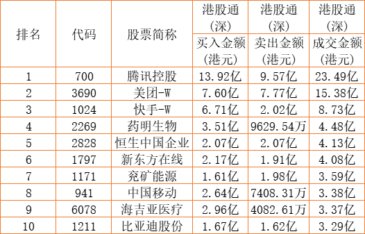 亚汇网实时数据统计:截至1月4日收盘,腾讯控股、美团-W、中国移动位居港股通(沪)成交前三,腾讯控股、美团-W、快手-W位居股通(深)成交前三。