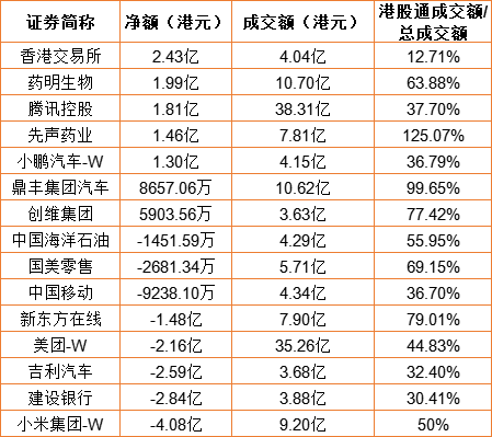 亚汇网1月9日港股通数据统计显示:香港交易所净买入额居首,达2.43亿港元,小米集团-W净卖出额居第一位。(亚汇网编辑:陌尘)