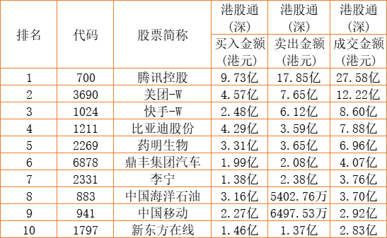 亚汇网实时数据统计:截至1月12日收盘,腾讯控股、美团-W、比亚迪股份位居港股通(沪)成交前三,腾讯控股、美团-W、快手-W位居股通(深)成交前三。