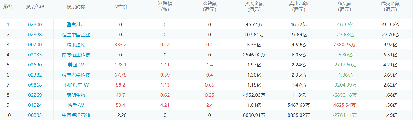 亚汇网7月21日港股通数据统计显示:腾讯控股净买入额居首,达5.33亿港元,盈富基金净卖出额居第一位。(亚汇网编辑:静香)