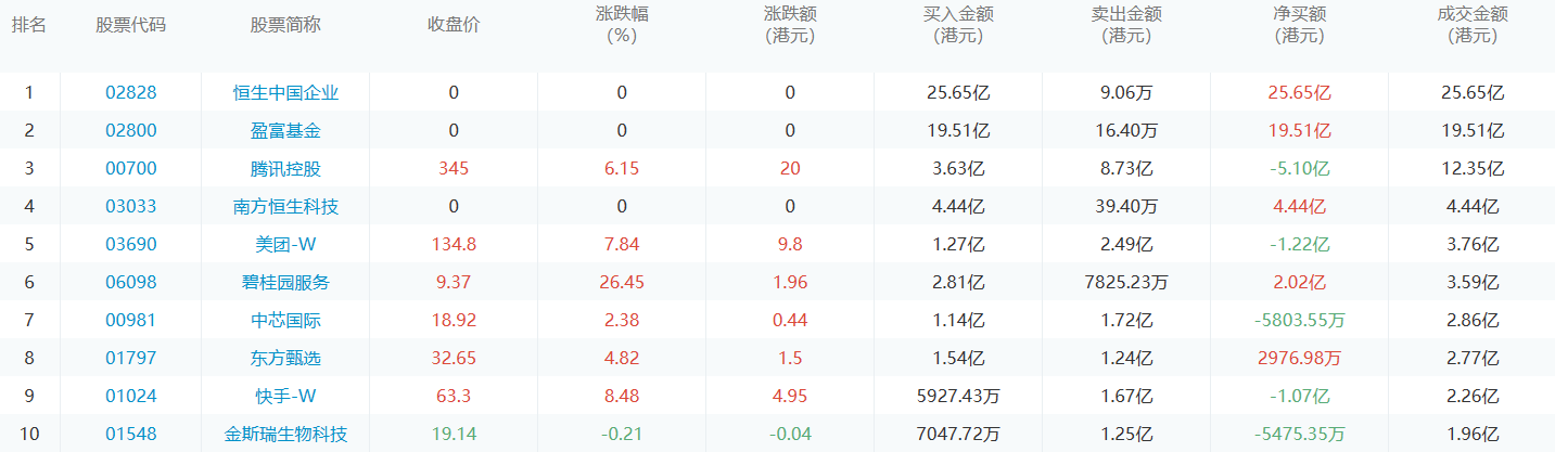 亚汇网7月25日港股通数据统计显示:恒生中国企业净买入额居首,达25.65亿港元,中芯国际净卖出额居第一位。(亚汇网编辑:静香)