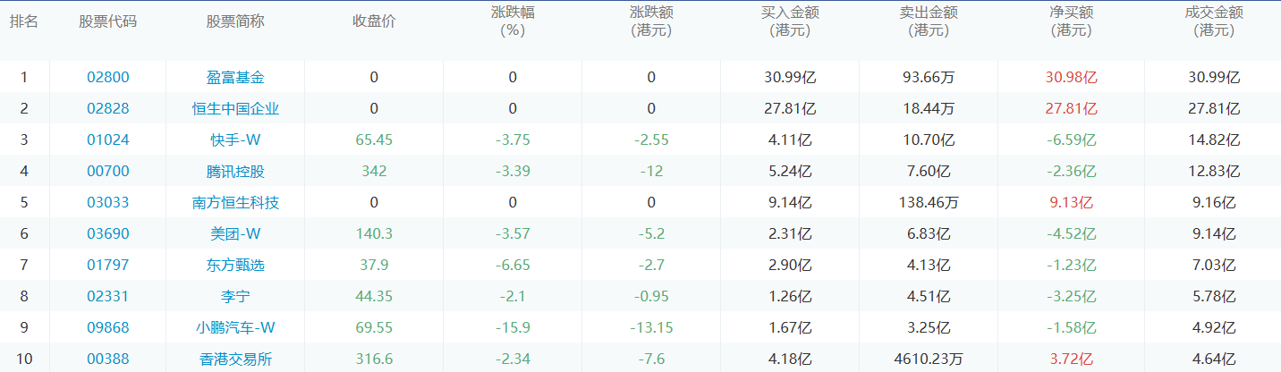 亚汇网8月2日港股通数据统计显示:盈富基金净买入额居首,达30.99亿港元,快手-w净卖出额居第一位。(亚汇网编辑:静香)