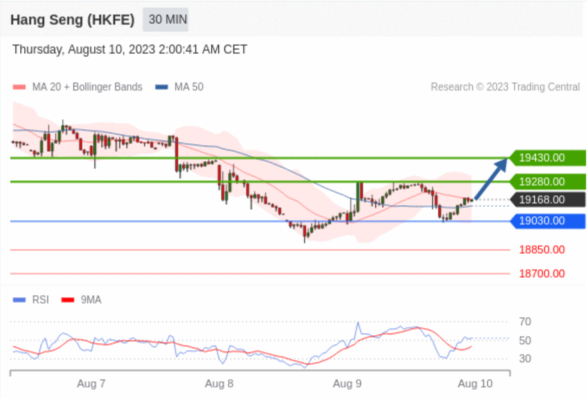 在 19030.00 之上,看涨,目标价位为 19280.00 ,然后为 19430.00 。