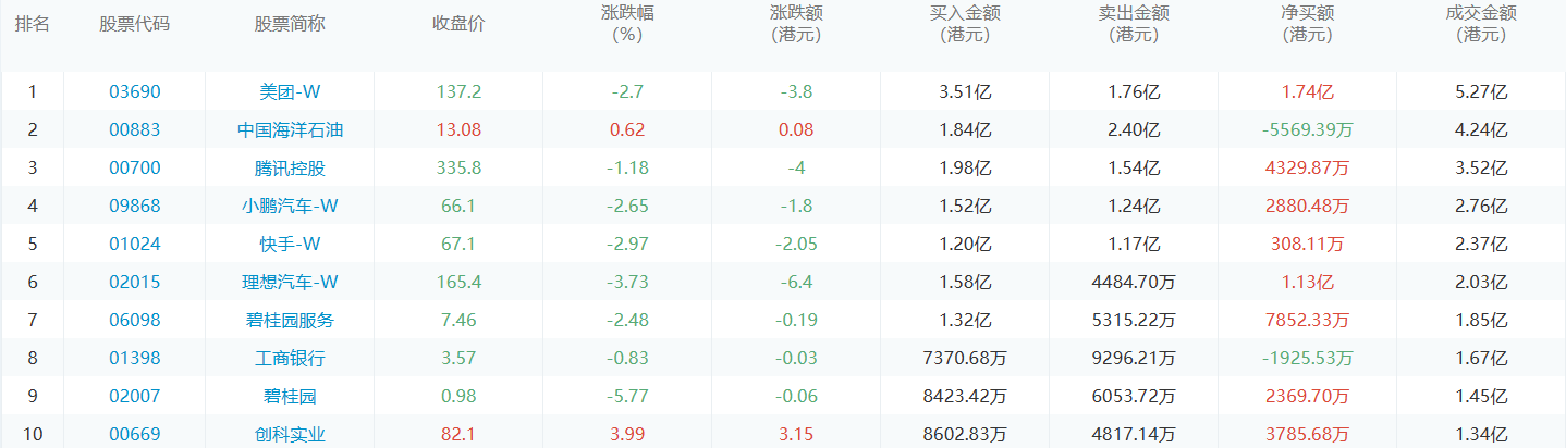 亚汇网8月11日港股通数据统计显示:美团-w净买入额居首,达3.51亿港元,中国海洋石油净卖出额居第一位。(亚汇网编辑:静香)