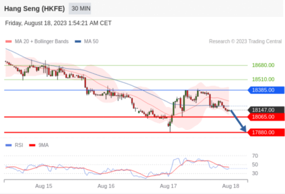在 18385.00 之下,看跌,目标价位为 18065.00 ,然后为 17880.00 。