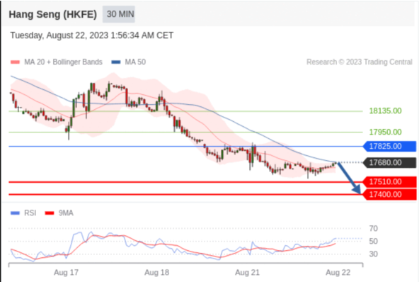 交易策略: 在 17825.00 之下,看跌,目标价位为 17510.00 ,然后为 17400.00 。