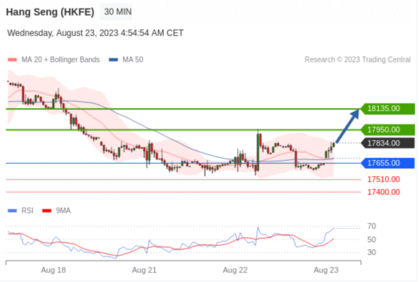 在 17655.00 之上,看涨,目标价位为 17950.00 ,然后为 18135.00 。