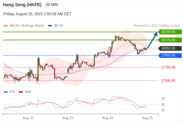 在 17950.00 之上,看涨,目标价位为 18175.00 ,然后为 18290.00 。