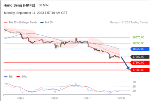 交易策略: 在 18220.00 之下,看跌,目标价位为 17800.00 ,然后为 17580.00 。