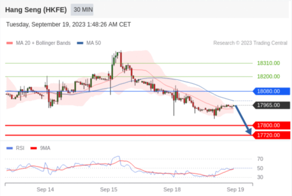 交易策略: 在 18080.00 之下,看跌,目标价位为 17800.00 ,然后为 17720.00 。