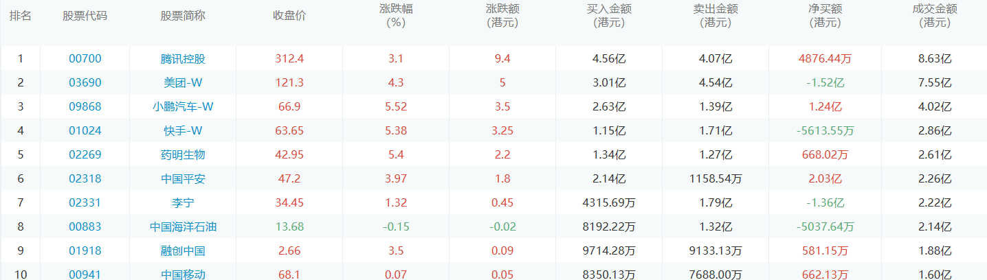 亚汇网9月22日港股通数据统计显示:腾讯控股净买入额居首,达4.56亿港元,美团-w净卖出额居第一位。