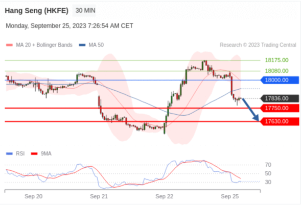 在 18000.00 之下,看跌,目标价位为 17750.00 ,然后为 17630.00 。