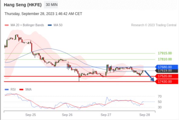 在 17680.00 之下,看跌,目标价位为 17520.00 ,然后为 17430.00 。
