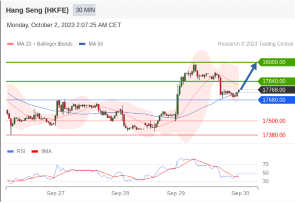 香港恒生指数期货 (V3) 当日内交易策略: 在 17680.00 之上 目标价位为 17840.00