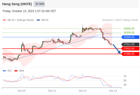 在 18090.00 之下,看跌,目标价位为 17810.00 ,然后为 17680.00 。