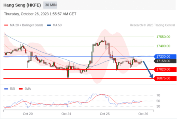 在 17230.00 之下,看跌,目标价位为 17020.00 ,然后为 16900.00 。