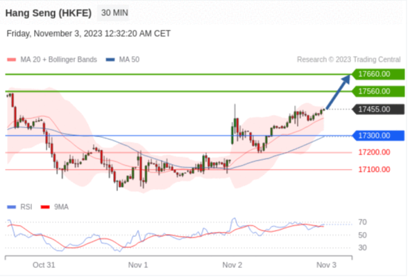 交易策略: 在 17300.00 之上,看涨,目标价位为 17560.00 ,然后为 17660.00 。
