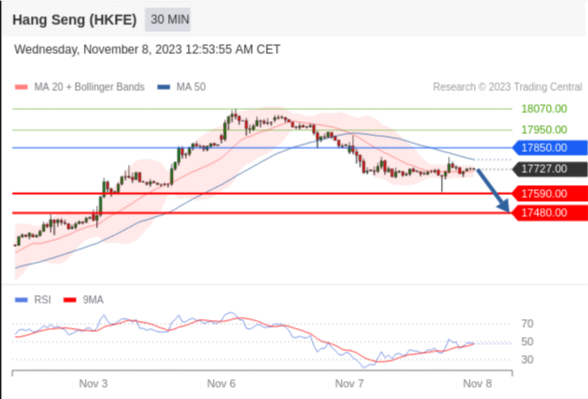 在 17850.00 之下,看跌,目标价位为 17590.00 ,然后为 17480.00 。