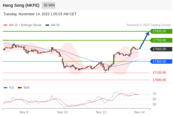 在 17350.00 之上,看涨,目标价位为 17750.00 ,然后为 17920.00 。
