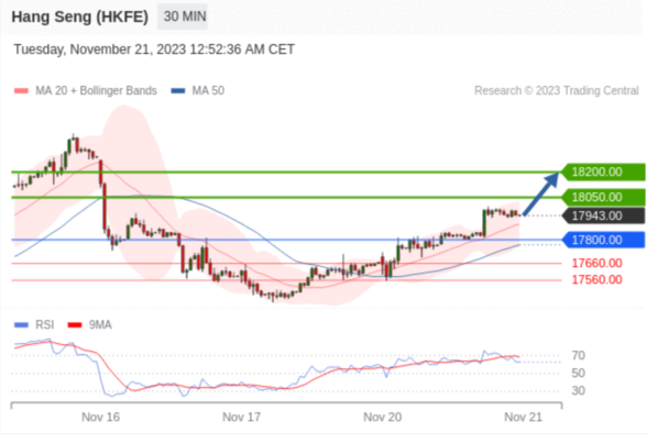 交易策略: 在 17800.00 之上,看涨,目标价位为 18050.00 ,然后为 18200.00 。