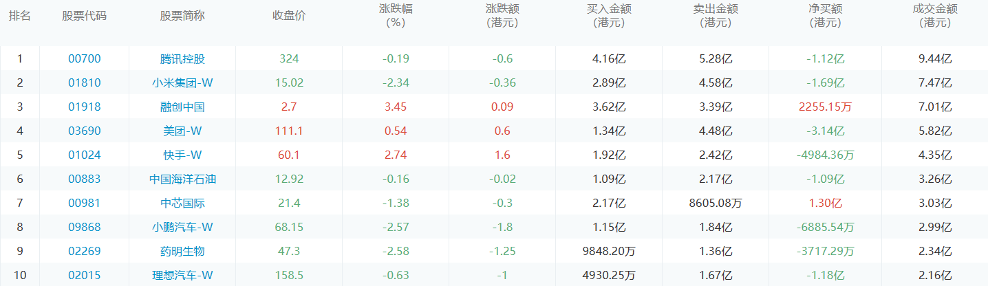亚汇网11月22日港股通数据统计显示:腾讯控股净买入额居首,达4.16亿港元,腾讯控股净卖出额居第一位。