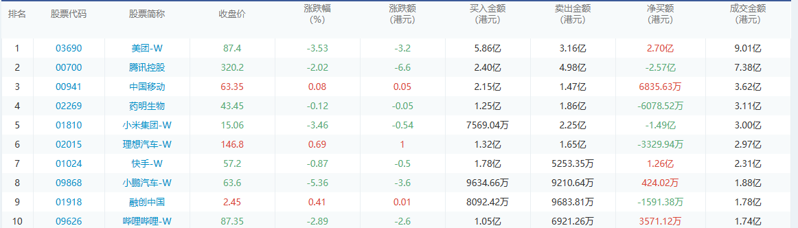 亚汇网12月1日港股通数据统计显示:美团-w净买入额居首,达5.86亿港元,腾讯控股净卖出额居第一位。