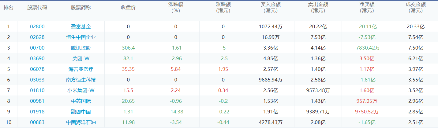 亚汇网12月13日港股通数据统计显示:美团-w净买入额居首,达4.85亿港元,盈富基金净卖出额居第一位。