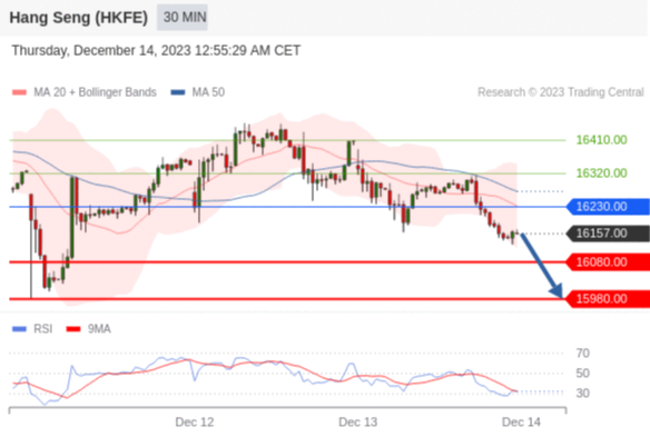 交易策略: 在 16230.00 之下,看跌,目标价位为 16080.00 ,然后为 15980.00 。