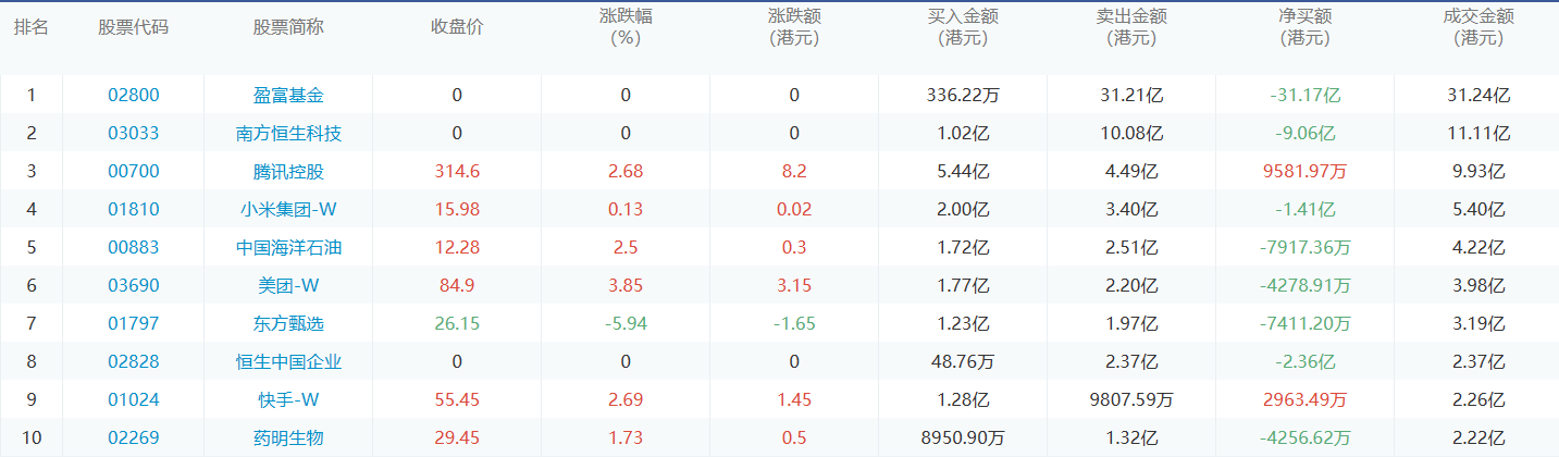 亚汇网12月15日港股通数据统计显示:腾讯控股净买入额居首,达5.44亿港元,盈富基金净卖出额居第一位。