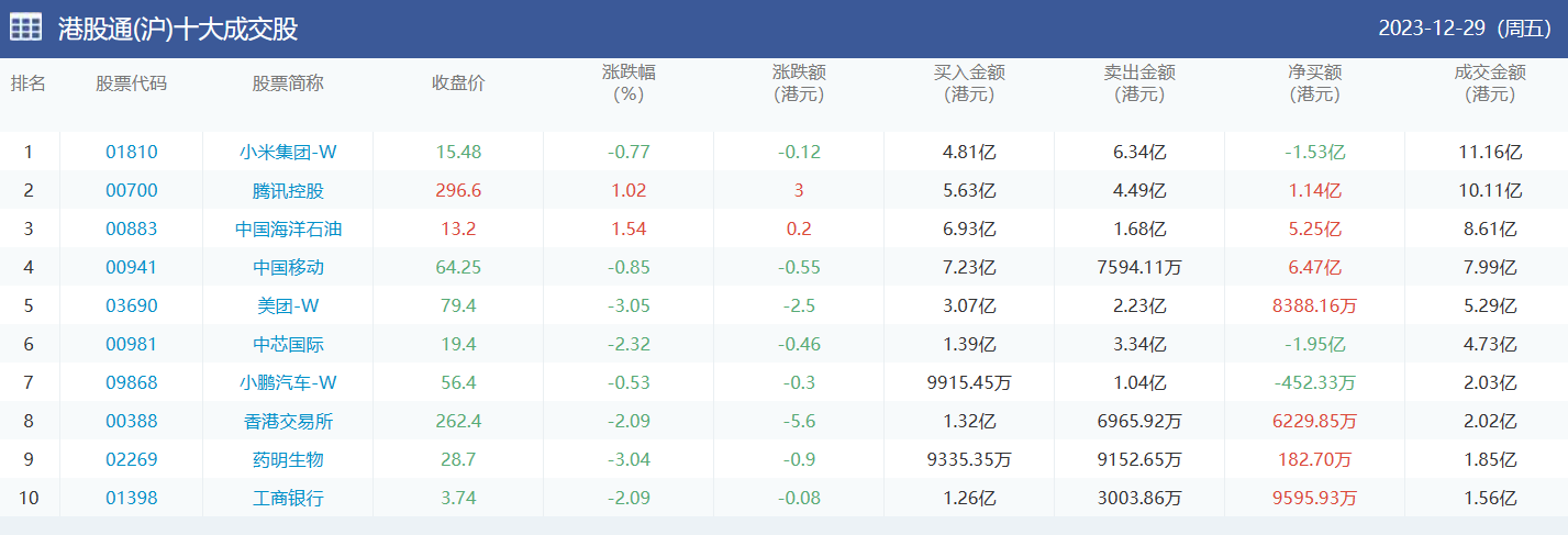 亚汇网实时数据统计:截至1月2日收盘小米集团-w、腾讯控股、中国海洋石油位居港股通(沪)成交前三,腾讯控股、美团-w、小米集团-w位居股通(深)成交前三。