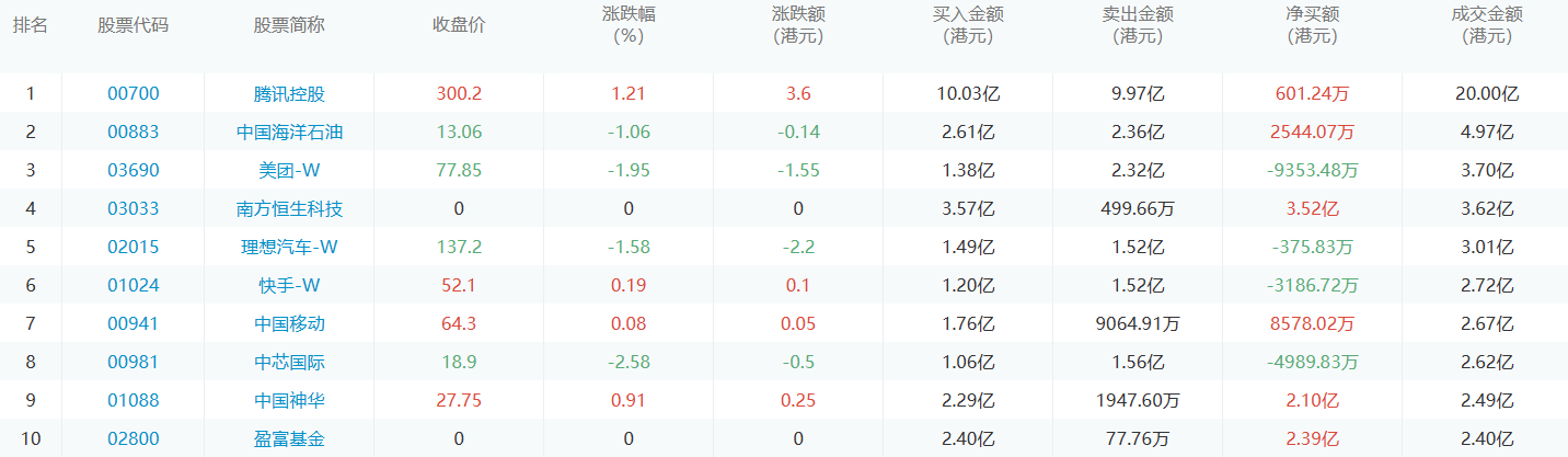 亚汇网1月3日港股通数据统计显示:腾讯控股净买入额居首,达10.03亿港元,腾讯控股净卖出额居第一位。