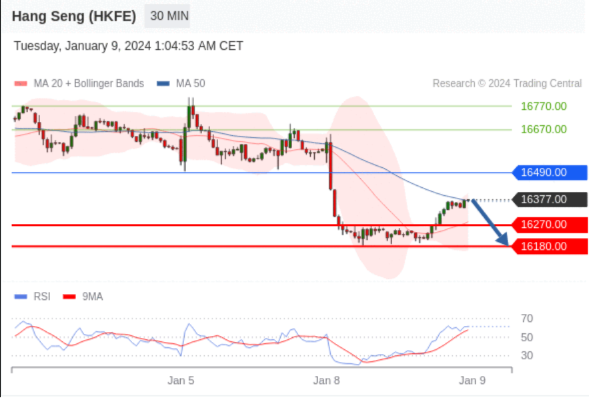 交易策略: 在 16490.00 之下,看跌,目标价位为 16270.00 ,然后为 16180.00 。