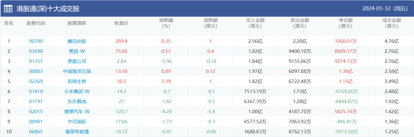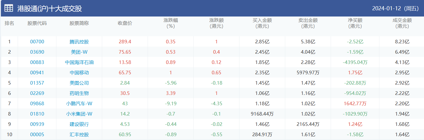 亚汇网实时数据统计:截至1月15日收盘腾讯控股、美团-w、中国海洋石油位居港股通(沪)成交前三,腾讯控股、美团-w、美图公司位居股通(深)成交前三。